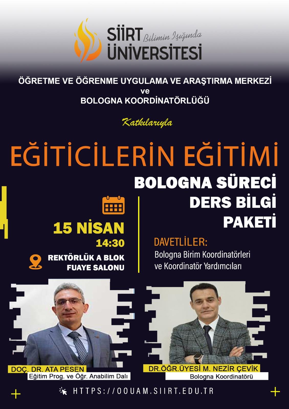 Üniversitemiz bünyesinde görev yapan Bologna birimi koordinatörleri ve koordinatör yardımcılarına yönelik olarak düzenlenen “Bologna Süreci Ders Bilgi Paketi” eğitimi başarıyla gerçekleştirildi.